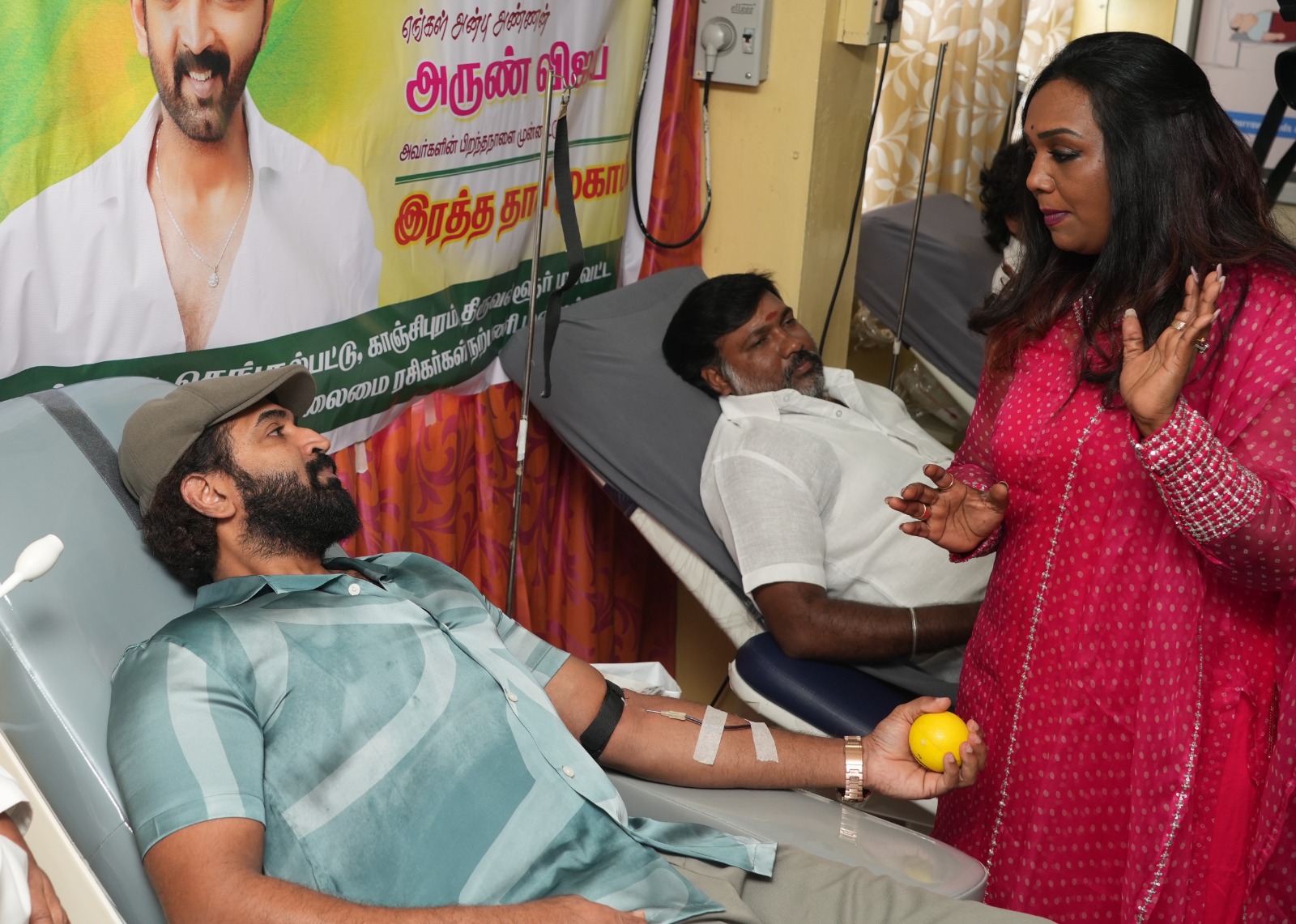 நடிகர் அருண் விஜய் ரசிகர் மன்றம் சார்பில் ரசிகர்கள் திரளாக கலந்துகொள்ள இராயப்பேட்டையில் உள்ள அரசு மருத்துவமனை இரத்த வங்கியில், இந்நிகழ்வு மிகச்சிறப்பாக நடைபெற்றது