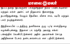 இந்நிலையில் மாலை மலர் நாளிதழ் வெளியிட்ட செய்தியில் “தணிக்கை சான்றிதழ் கிடைத்ததை இதனை பா. ரஞ்சித் அவரது எக்ஸ் பக்கத்தில் வெளியிட்டுள்ளார் அதில் ‘அமரன்கள் செய்த அநீதிக செய்த அநீதிகளை பேசும் தண்டகாரண்யம்’ என பதிவிட்டுள்ளார்” என செய்தி வெளியிட்டு உள்ளது.