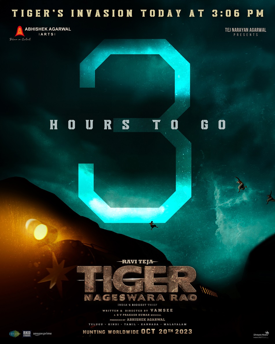 டைகர் நாகேஸ்வர ராவ் படத்தின் ஃபர்ஸ்ட் லுக் போஸ்டரும், அதைத் தொடர்ந்து வெளியான டைட்டில் லுக்கும் ரசிகர்களிடம் பெரும் அதிர்வை ஏற்படுத்தியது. இந்தியாவின் மிகப் பெரிய கொள்ளையனான டைகர் நாகேஸ்வர ராவின் உலகை தரிசிக்கும் நேரம் இது. வம்சி இயக்கத்தில் மாஸ் மஹாராஜா ரவி தேஜாவின் பிரமாண்ட பான் இந்தியா திரைப்படம் “டைகர் நாகேஸ்வர ராவ்” படத்தின் அதிரடியான டீஸர் தற்போது வெளியாகியுள்ளது.