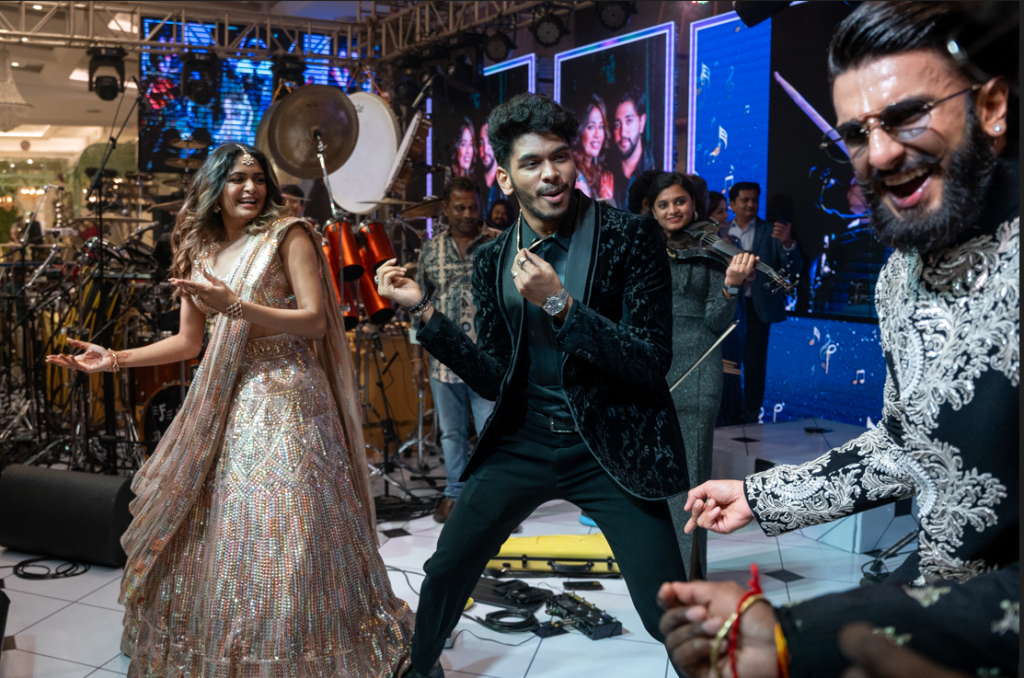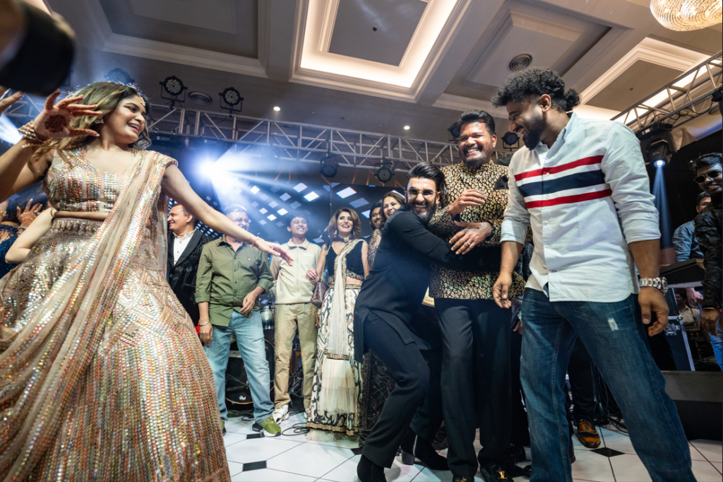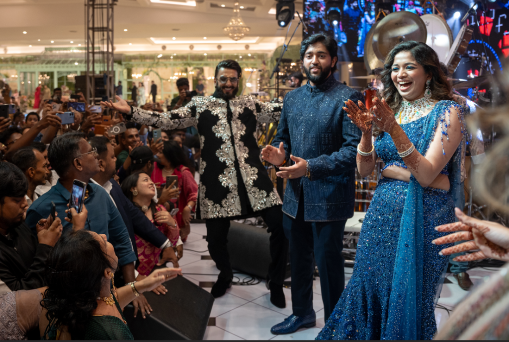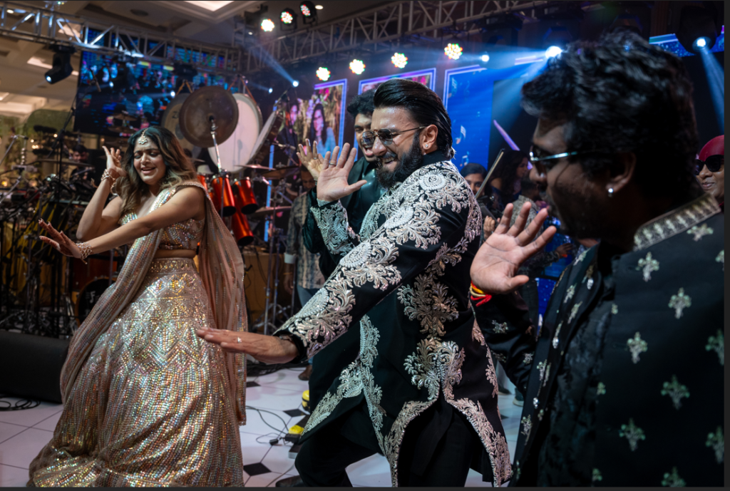 இந்திய திரையுலகின் பிரமாண்ட இயக்குனர் ஷங்கரின் மூத்த மகள் ஐஸ்வர்யா ஷங்கர் – தருண் கார்த்திகேயன் திருமண வரவேற்பு நிகழ்ச்சி வெகு விமர்சையாக நடைபெற்றது. பல முக்கிய பிரபலங்கள் சூழ நடைபெற்ற இந்த திருமண வரவேற்பு நிகழ்ச்சியில் பிரபல பாலிவுட் நடிகர் ரன்வீர் சிங் நடனமாடி மணமக்களை உற்சாகப்படுத்தினார். டிரம்ஸ் சிவமணி இசைக்க நடனமாடிய ரன்வீர் சிங்குடன் மணமக்கள் ஐஸ்வர்யா ஷங்கர் – தருண் கார்த்திகேயன், அதிதி ஷங்கர், அர்ஜித் ஷங்கர், இயக்குனர் அட்லி ஆகியோர் நடனமாடினர்.