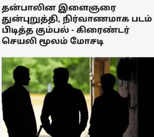 சமீபத்தில் ராமநாதபுரத்தில் ஐ.டி. இளைஞர் ஒருவர், கிரைண்டர் ஆப் மூலம் ஒரு பெண்ணை(!) தொடர்பு கொள்ள, அந்தப் பெண் தனி இடத்துக்கு அழைத்திருக்கிறார். இவர் அங்கு செல்ல.. அங்கே அந்தப் பெண்ணுடன் நான்கைநது ஆண்கள் இருந்திருக்கின்றனர்.