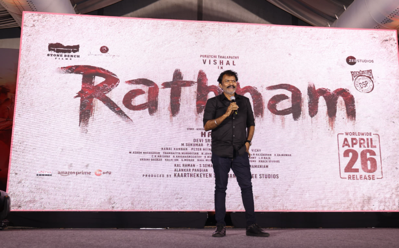 ‘ரத்னம்’ பட டீமிற்கு நன்றி. தேசிய விருது பாராட்டுகளுக்கு என் நன்றிகள். ஹரி உடன் நிறையப் படம் வேலை செய்துள்ளேன். ‘ஆறு’ படத்தில் ஆரம்பித்து இப்போ 6வது படம். கதை எழுதி ஒரு படம் உருவாவது எல்லாமே ஒரு இயக்குநர் கையில் தான், அவரால் தான் நாங்கள் எல்லோரும் வேலை செய்கிறோம். ஹரி எனக்கு குடும்பம் மாதிரி. அந்த உறவு தான் எங்கள் பாடல்களில் பிரதிபலிக்கிறது. இந்தப்படம் அவர் படத்தில் இருந்து வித்தியாசமாக இருந்தது. விஷால் சாருடன் ஒரு இடைவெளிக்குப் பிறகு வேலை செய்கிறேன் அதுவும் எங்களுக்குப் பிடித்த‌ ஹரி சார் படத்தில் வேலை பார்த்தது மகிழ்ச்சி. ஸ்டோன் பெஞ்ச் கார்த்திக் மிக அன்பானவர், அவருக்கு நன்றி. சமுத்திரக்கனி சார் அருமையாக நடித்துள்ளார். எல்லோருமே இந்தப்படத்தில் கலக்கியுள்ளனர். சிங்கிள் ஷாட்டில் ஆக்ஷ‌ன் காட்சி பிரம்மாண்டமாக இருக்கும். எப்படி செய்தார்கள் என்றே தெரியவில்லை. இது தான் மிகப்பெரிய சிங்கிள் ஷாட்டாக இருக்கும் என்று நினைக்கிறேன், பிரமிப்பாக இருந்தது. இசையமைப்பாளராக நான் ரொம்பவும் எஞ்சாய் செய்தேன். ஹரி சார் ஸ்பீட் அவரது சிந்தனையிலேயே இருக்கிறது. அவர் படத்தில் இது எனக்கு பிடித்த படம். விஷால் சார் இதில் கலக்கியிருக்கிறார். ப்ரியா பவானி சங்கர் நன்றாக நடித்துள்ளார். அனைவருக்கும் பிடித்த படமாக இப்படம் இருக்கும், நன்றி.